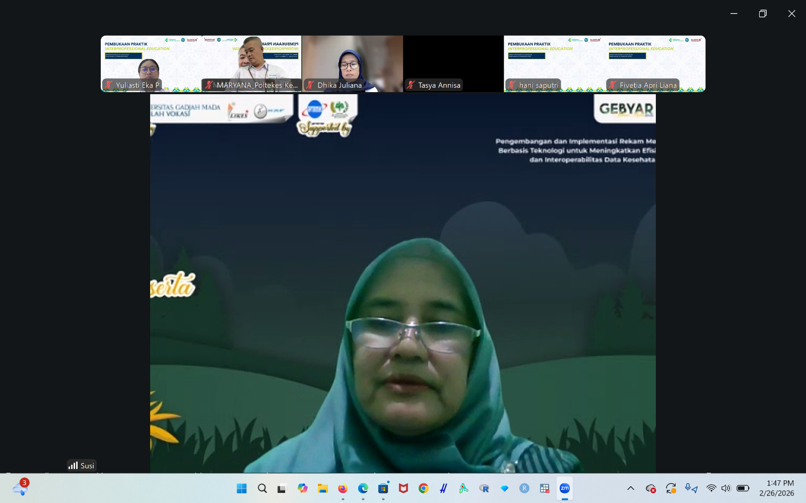 Pusat Pengembangan Pelatihan Poltekkes Kemenkes Yogyakarta menyelenggarakan kegiatan Pembukaan Praktik Interprofessional Education (IPE) pada Kamis, 26 Februari 2026 secara daring melalui Zoom Meeting. Kegiatan ini diikuti oleh 156 mahasiswa yang akan melaksanakan praktik kolaborasi antarprofesi di bidang kesehatan.